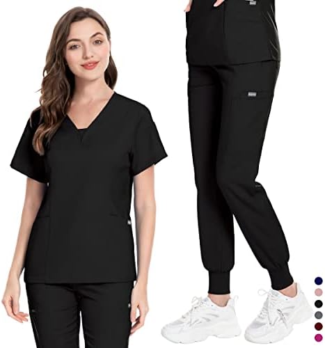 Trendy Design: The highest of this scrub go well with has a trendy v-neck design, permitting you to nonetheless keep your character on the go.