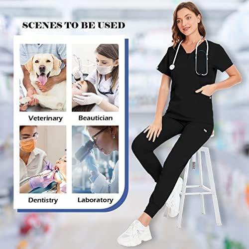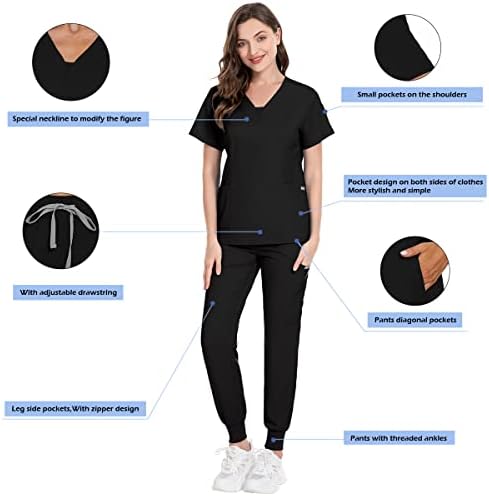 #niaahinn #Scrub #Go well with #Set #Girls #Fashionable #Vneck #Leg #Drawstring #Jogger #Pants #Medical #Nursing #Uniforms #Set #BlackM